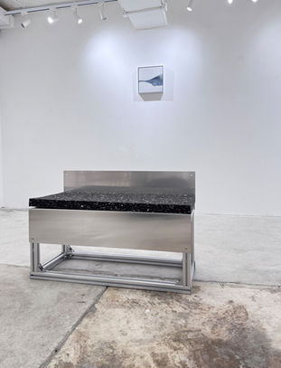 This multi-functional piece of furniture serves as both a pedestal for displaying artwork and a bench for customer relaxation. Crafted from high-quality aluminum, it features a stainless steel tabletop with a mirror finish, adding a touch of sophistication and modernity to any space.